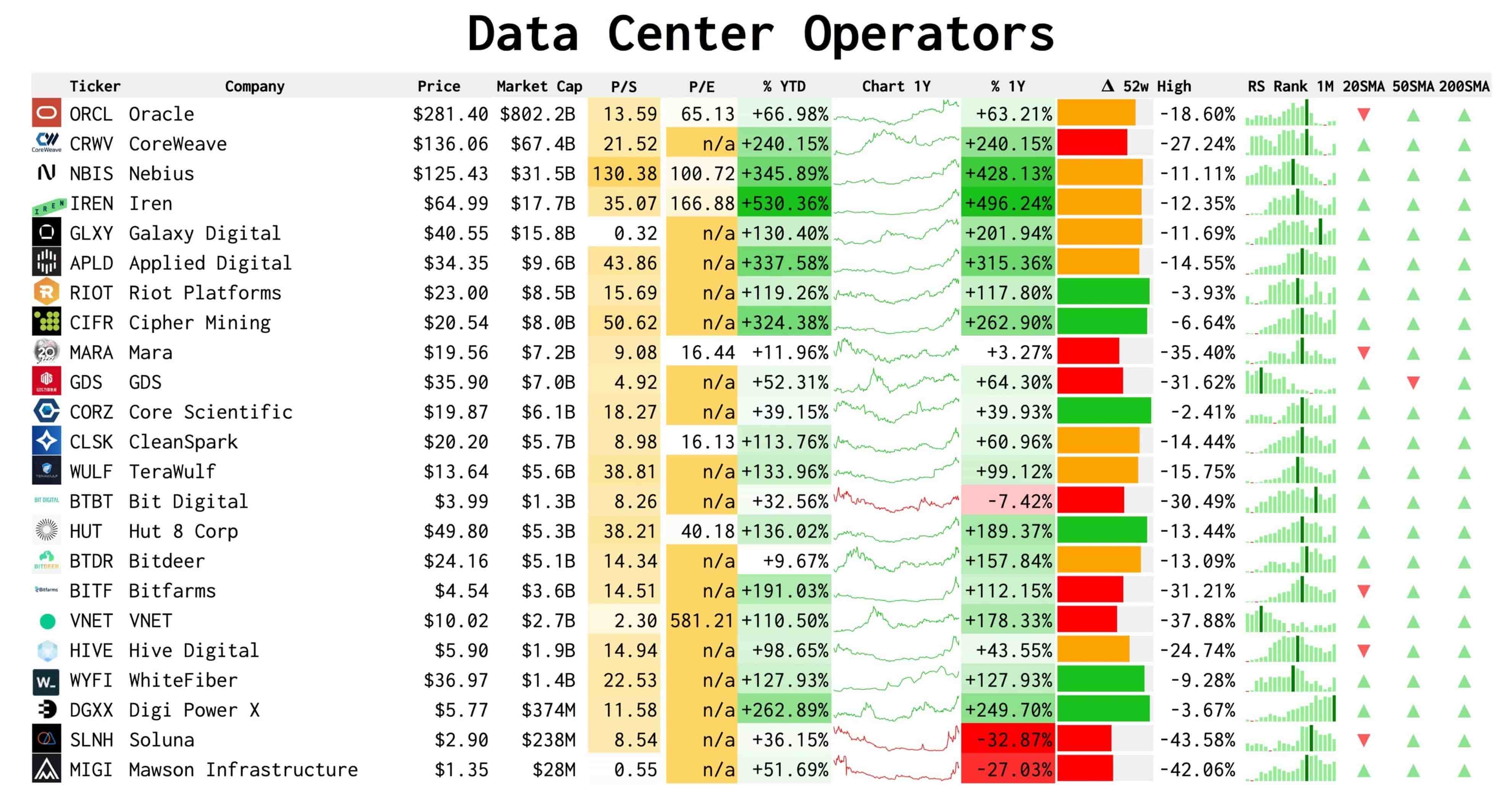 Nici măcar bula dot-com nu a mobilizat atâta capital în jurul unei singure tehnologii. Astăzi, trilioane de dolari se canalizează către centre de date și infrastructuri de calcul — un segment concentrat în jurul unor operatori precum Oracle (ORCL), CoreWeave (CRWV), Nebius (NBIS), Iren (IREN), Galaxy Digital (GLXY), Applied Digital (APLD), Riot Platforms (RIOT), Cipher Mining (CIFR), Mara (MARA), GDS (GDS), Core Scientific (CORZ), CleanSpark (CLSK), TeraWulf (WULF). Aceasta nu mai este o tendință speculativă, ci o reconfigurare structurală a infrastructurii energetice și digitale.